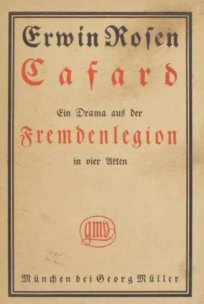 Erwin Rosen ist selbst Fremdenlegionär gewesen und hat ein vielbeachtetes Buch über die Legion geschrieben. Sein diesem Milien entnommenes vieraktiges Drama „Cafard“,. das im Deutschen Künstlertheater einen lauten, aber nicht ohne Widerspruch hingenommenen Erfolg hatte, erwies sich als ein geschickt, aber ohne viele Bedenken zurechtgezimmertes Tendenzstück. Der Cafard ist der Tropen-Wahnsinn, vor dem kaum ein Mann in der Fremdenlegion bewahrt bleibt, und der mit einer von Praktikern geradezu im voraus zu berechnenden Sicherheit die einzelnen Soldaten und ganze Abteilungen erfaßt. Dann stürmen sie wie Besessene in die Wüste hinaus, wo sie von den über alle Straßen klug verteilten Spahis fast mit tödlicher Sicherheit wieder eingefangen werden.