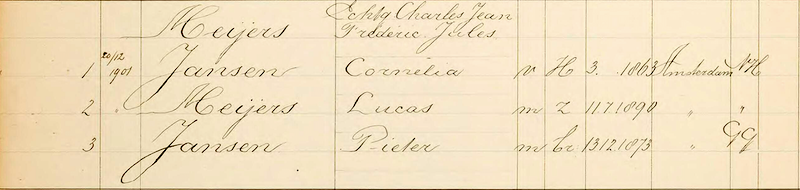 Charles Meijers trouwde met Cornelia Jansen en zij hadden één zoon Lucas Meijers geboren 11 juni 1890.