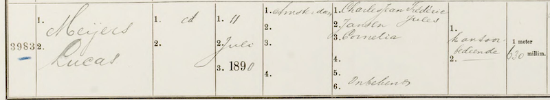 In 1909 werd Lucas Meijers, 19 jaar oud gekeurd voor de militaire dienst.[3].