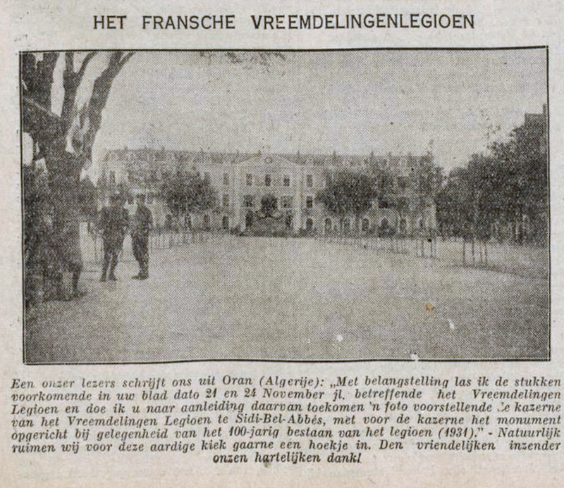 Volgens het bijschrift had deze krant op 21 en op 14 november 1931 een artikel over het Franse Vreemdelingenlegioen gepubliceerd.