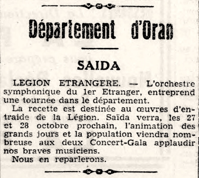 Tournee Artistique au profit des oeuvres d’entraide de la Legion Etrangere
