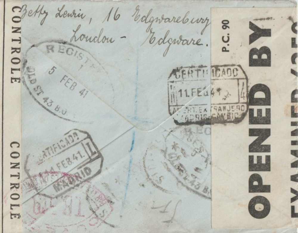 The letter made its way to Spain, Madrid where it was opened and examined on the 11th of februari 1941 and most likely later in Oran TB 319 [3].