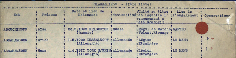 Based on his address Hans Abrahamsohn served in the French Foreign Legion.