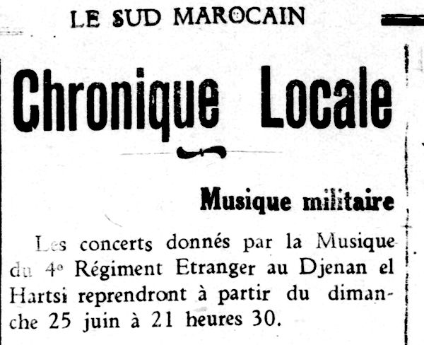 21-06-1939Le Sud marocain. Organe hebdomadaire de défense des intérêts français, désigné pour l'insertion des annonces légales et judiciaires Djenan el Hartsi, jardin au Marrakech
