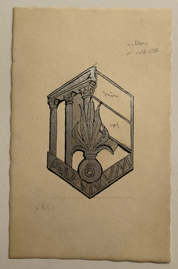 Within the mixed lot of military items tha belonged to Ulrich LEITZMANN we find a very detailed almost technical drawing of the insigne of the 6 REI.