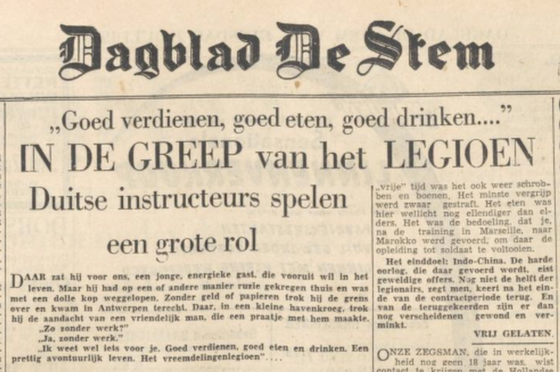 Dit artikel uit Dagblad De Stem van 21 juli 1953 is een krachtig en emotioneel relaas van een minderjarige Nederlander die zich “liet ronselen” voor het Franse Vreemdelingenlegioen.