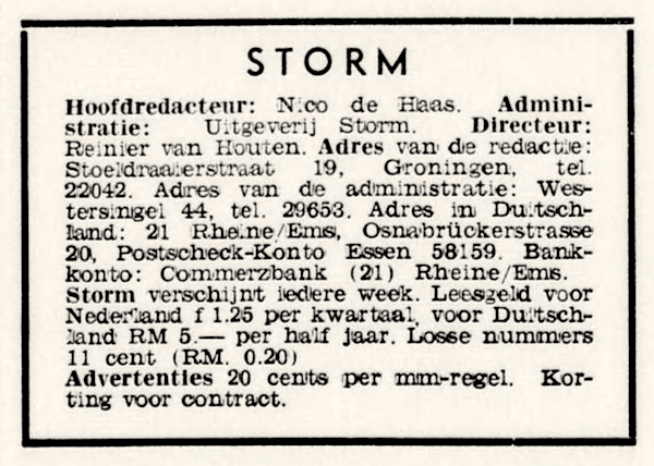 Na Dolle Dinsdag [ 5 september 1944 ]trok Nicolaas de Haas met de Storm redactie naar Groningen.