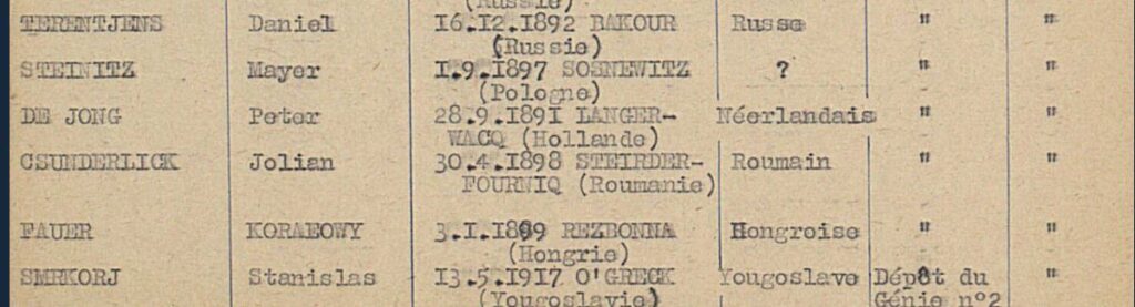 Ergens in de periode van 1 september 1939 tot 25 juni 1940, zeer waarschijnlijk aan het begin van deze periode, nam Pieter de Jong vrijwillig dienst in het Franse leger voor de duur van de oorlog. Als zijn voornaam werd Peter in plaats van Pieter geregistreerd. Hij deed dat bij het rekruteringsbureau van Arras. Hij werd ingedeeld bij het 1e régiment de marche de volontaires étrangers (RMVE )
