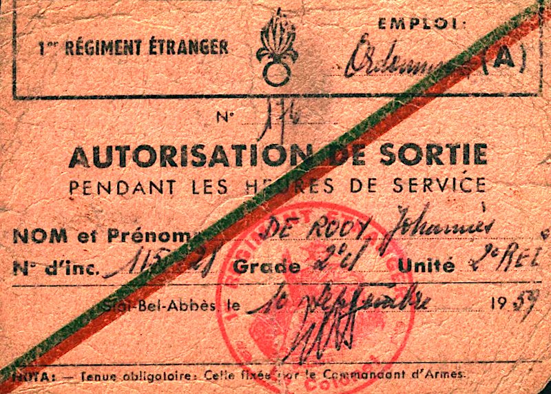 Op 12 oktober 1956 nam Andries de Rooij dienst in het Vreemdelingenlegioen, zijn numero matricule werd 115.128,