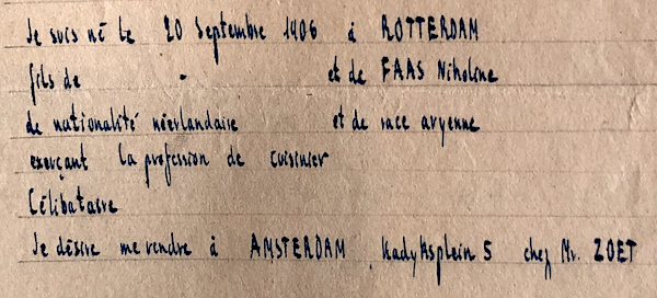 Aangezien Arie Faas zowel zijn geboortedatum, 20 september 1906, als zijn geboorteplaats, Rotterdam, had aangegeven zou het vinden van verdere informatie over zijn persoon in Nederlandse archieven naar verwachting dan ook wel geen moeilijke opgave worden. Het risico van al dit gemak is zelf letterlijk gemakzuchtig te worden.