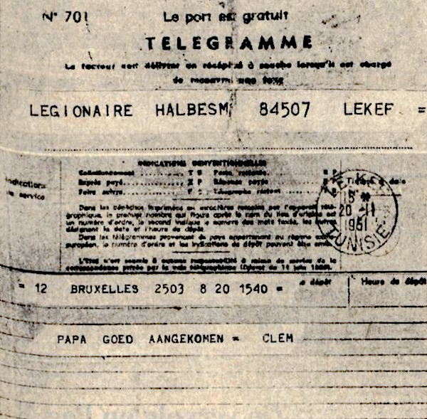 Ze vroeg in een telefooncel gewoon aan: “Legionnaire Halbesma, Kamp Le Cef Tunis”.