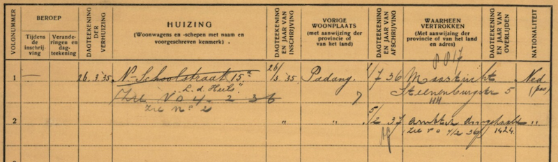 De afschrijving van Jean Heesakkers volgde op 1 juli 1936, geregistreerd werd dat hij vertrokken was naar Maastricht. Zijn vrouw Anisah werd op 5 februari 1937 “Ambtshalve doorgehaald”.
