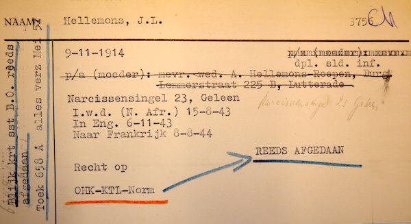 Tijdens de Tweede Wereldoorlog werd er in Engeland een Militaire Persoonskaart van Johannes Hellemons aangemaakt.