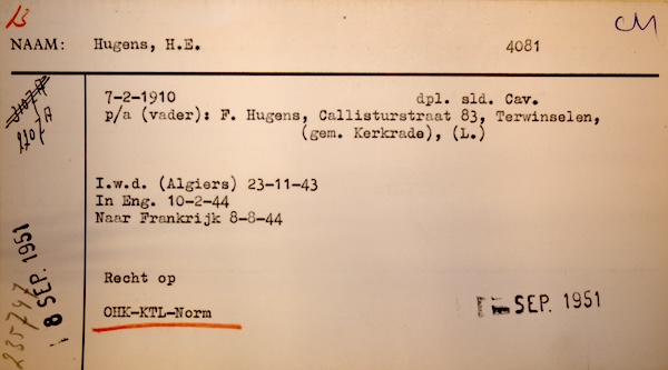 Tijdens de Tweede Wereldoorlog werd er in Engeland een Militaire Persoonskaart van Hendrik Hugens aangemaakt.