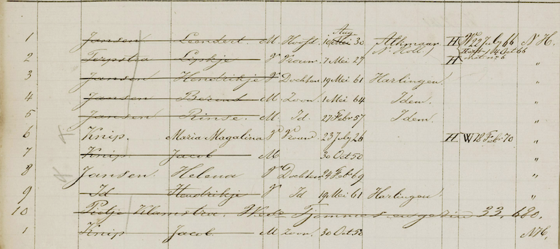 In het bevolkingsregister van Leeuwarden staat de familie in de periode 1859 – 1876 als volgt geregistreerd.