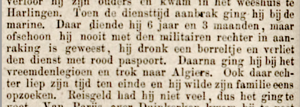 Rinse Jansen nam vermoedelijk in 1881 dienst in het Franse Vreemdelingenlegioen en werd o.a. gelegerd in Algerije, destijds vaak aangeduid met Algiers.