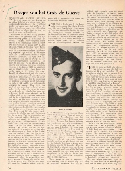 Onder de titel “Drager van het Croix de Guerre” verscheen op 18 januari 1943 in het weekblad de “The Knickerbocker Weekly” een anderhalf pagina tellend artikel over oud-Legionair Albert Kellerman.