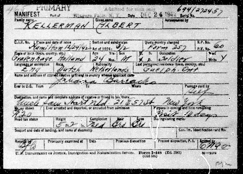 | [8] | 2.13.71 Defensie (Londen) 294 Opgave en gegevens van Nederlanders, die vanuit bezet gebied gedurende de maand maart 1943 in Engeland zijn aangekomen en worden voorgedragen voor een onderscheiding; […] , dpl kpl A. Kellerman, […] 412 Gegevens van en voorstellen tot het toekennen van het kruis van verdienste aan de Engelandvaarders; […], dpl kpl A. Kellerman, […] 491 Reactie van de aspirant-kwartiermeester E.W. Lambert op een in het weekblad Knickerbocker verschenen interview met kpl A. Kellerman, getiteld Drager van het Croix de Guerre. |