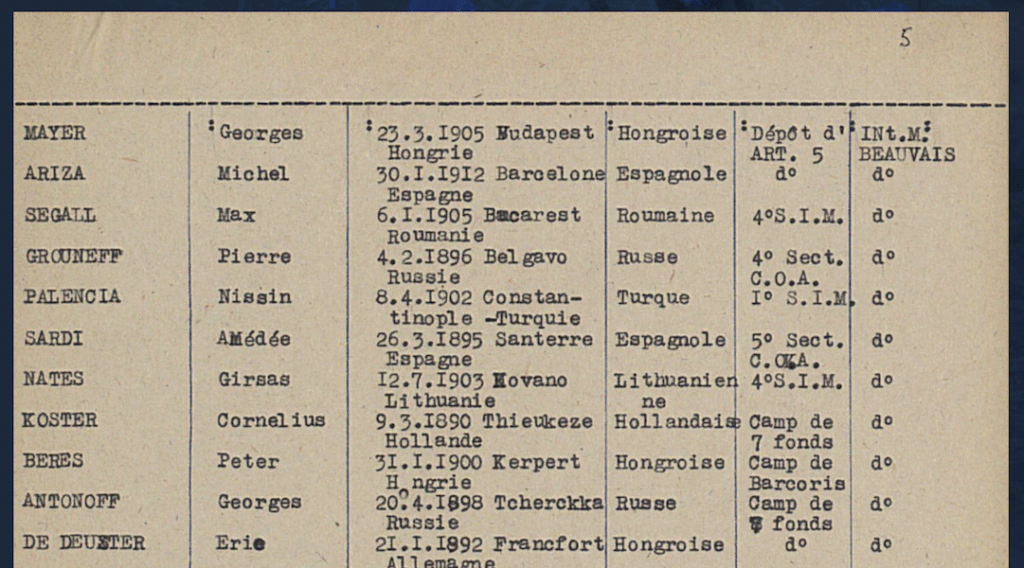 Cornelius Koster nam volgens de gegevens uit deze lijst dienst in bij de Intendance Militaire in Beauvais.