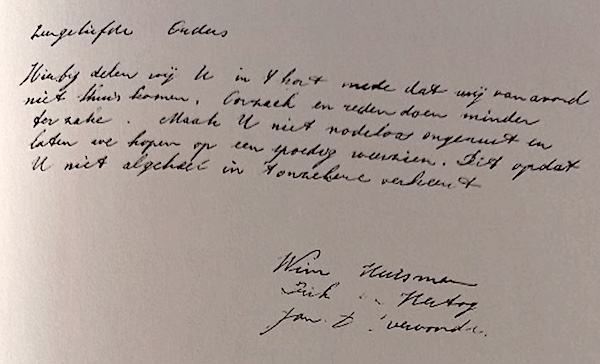 Maak U niet nodeloos ongerust en later we hopen op een spoedig weerzien, Dit opdat U niet algeheel in ‘t onzekere verkeert