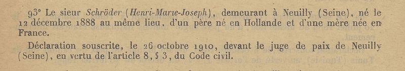 Zo ook in de casus van Henri Schröder geboren op 12 december 1888 in Neuilly sur Seine (Frankrijk).