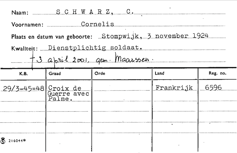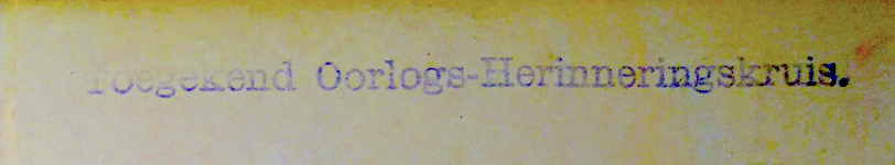 Door middel van een paarse stempel werd op zijn militaire persoonskaart nog geregistreerd, toegekend Oorlogs-Herinneringskruis.