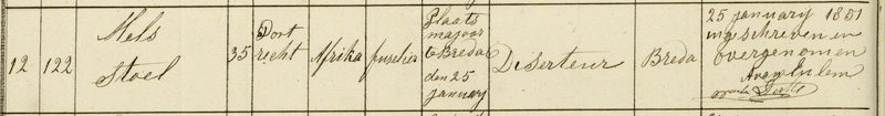 18 juli 1845 als deserteur.