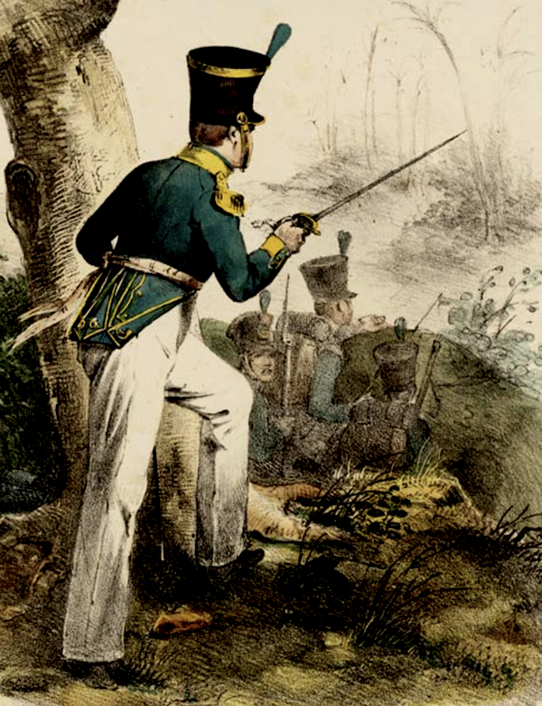 Onze munitiewagens , kanonstukken , bagage enz. werden allen door den vijand genomen. In het retireren redde ik een Zwitserschen officier die gewond was , en tegelijkertijd bragt ik nog een wagon met bagage en buskruid te Lorreta behouden binnen. Wij waren ten getale van 22, die zoo ongeveer 3 uren gesparteld hebben , om met onzen buit uit de handen van den vijand te geraken. Het was ook bij deze gelegenheid dat mij de ridderorde van St. Sylvestre is toegekend.