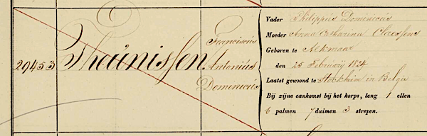 Daar bij kwam nog dat alle in Nederlandse archieven aangetroffen registraties of voor, 1848 of na 1882 waren de tijd T… in vreemde krijgsdienst was geweest.