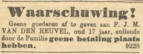 Begin 1892, op 18 januari, verscheen er in de Haagsche courant volgende opmerkelijke advertentie.