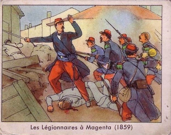 Waarschijnlijk gaat het bij de deuxième Division om de 2e Division d’Infanterie waar 2 bataillons van het 2e étranger deel van uitmaakten als onderdeel van de Franse troepenmacht die deel nam aan de veldtocht in Italie.