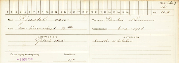 In November 1934 stond Bertus van Gastel in Amsterdam ingeschreven als Marktkoopman in huishoudelijke artikelen. Zijn adres was toen Van Zesenstraat 50 III .