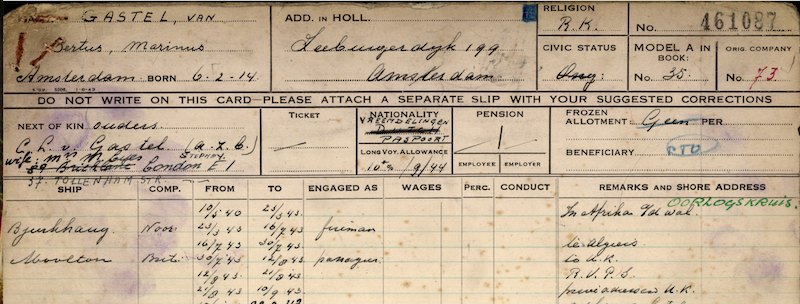 Op 30 juli 1943 zou Bertus van Gastel met een Brits schip als passagier uit Algiers vertrekken naar de U.K. en daar op 12 augustus 1943 aankomen.