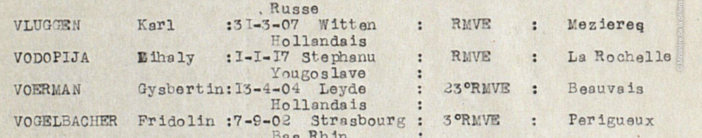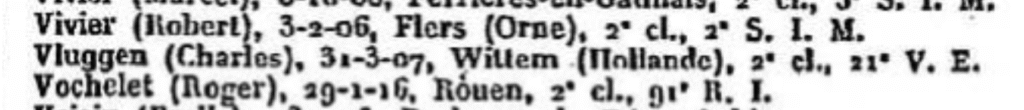 Hij was soldat 2e classe, zijn eenheid 21e RMVE werd afgekort als V.E.