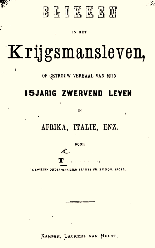 ” Blikken in het Krijgsmansleven”, geschreven door een zekere “T…”, voormalig onderofficier in het Franse en Pauselijke leger.